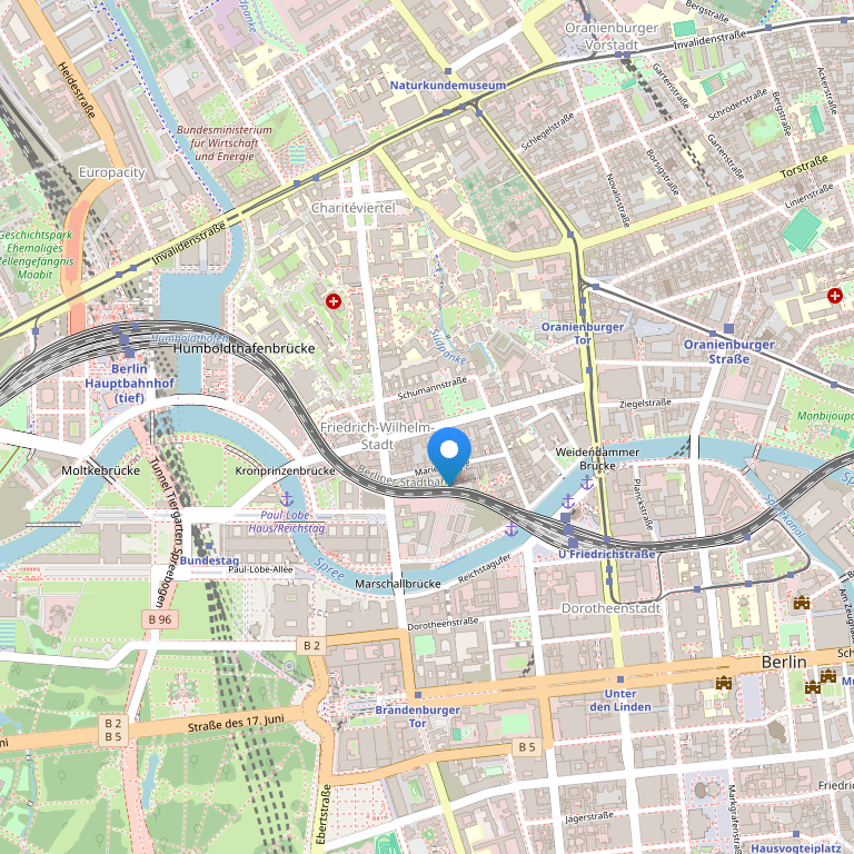 Отель расположен на центральной улице Берлина Фридрихштрассе, в исторической части города. Недалеко от отеля находятся здание Рейхстага, Александрплац, Бранденбургские ворота.
