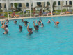 В номер быстро заселили. Потом на обед. И к бассейну. После обеда танцы у бассейна, пляжный волейбол, водной поло, настольный теннис и мини клуб.