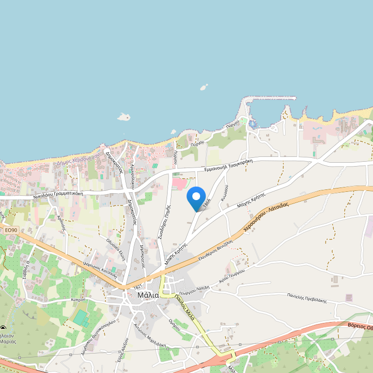 Отель расположен в 31 км восточнее аэропорта г. Ираклион, в курортном городке Малия.