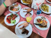 Первое ощущение было что приехал в Анапу)) в основном пенсионеры, тети-моти и т д. молодежи мало, в основном с маленькими детьми. По еде - кормят хорошо, есть мясо, индейка, курица, люля, рыба (давали даже семгу), единственное, салаты и овощи не всегда свежие, и некоторые блюда, потому что выкладывают повторно. из алкоголя...