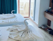 Номер небольшой, с видом на бассейн. Видно, что недавно был ремонт: всё ухоженно, сантехника исправна. Анимация иногда бывает громкой, но достаточно закрыть балкон, и шум не будет мешать.