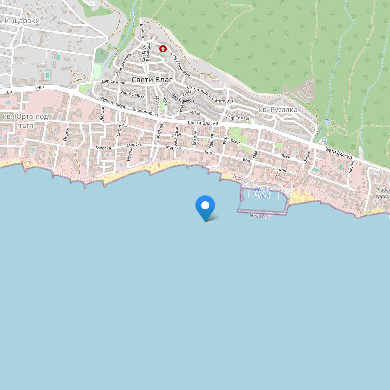 Поселок расположен в южном регуляционном расширении Святого Власа и является одним из самых больших жилых комплексов в этом районе. Размещается на высоте между 10 и 16 горизонталями над уровнем моря и предлагает уникальный вид на залив старинного города Несебр. Комплекс находится приблизительно в 100 м от моря и в 200 м от Яхтенного порта „Марина Диневи” – Святой Влас с причальным комплексом на более чем 300 яхт, 25 из которых могут иметь длину 25м. Святой Влас находится всего в 1,5 км от Солнечного берега и в 7 км от Несебра. До аэропорта города Бургас 35 км.