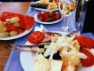 - на обед и ужин блюда на любой вкус, мясо, рыба, курица, много овощей, диетический...