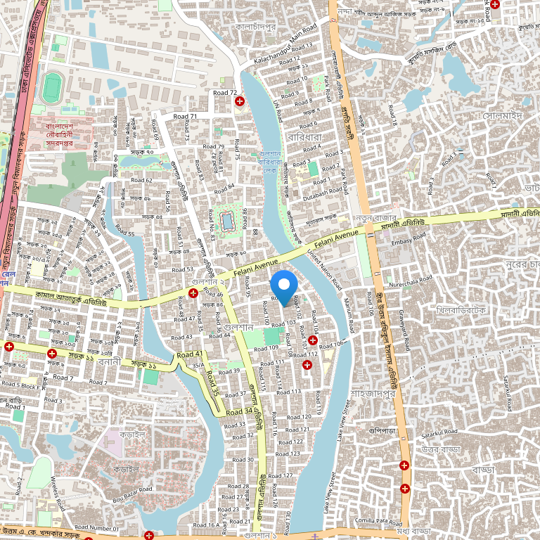 Отель расположен в новом дипломатическом и деловом районе Gulshan, в нескольких шагах от известных торговых центров, посольств, ресторанов, клубов, художественных галерей и всего в 8 км от международного аэропорта Hazrat Shahjalal.