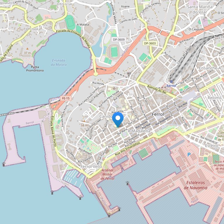 Построенный в 1969 году отель находится в самом центре города Феррол, на площади Испании – самом популярном районе города, датирующемся 18-ым веком, на пересечении основных культурных и деловых маршрутов. Рядом располагается район La Magdalena, где вы найдете множество магазинов, ресторанов типичной галийской кухни, баров и вечерние развлечения. Отель идеально расположен и для отдыхающих, и для бизнес-клиентов. Последняя реновация – в 2005 году.   Месторасположение: Отель расположен в 250 м от центра города, в 100 м от автобусной станции и железнодорожного вокзала, в 50 м от остановки такси, в 50 м от автобусной остановки, в 50 км от аэропорта A Coruña, в 80 км от