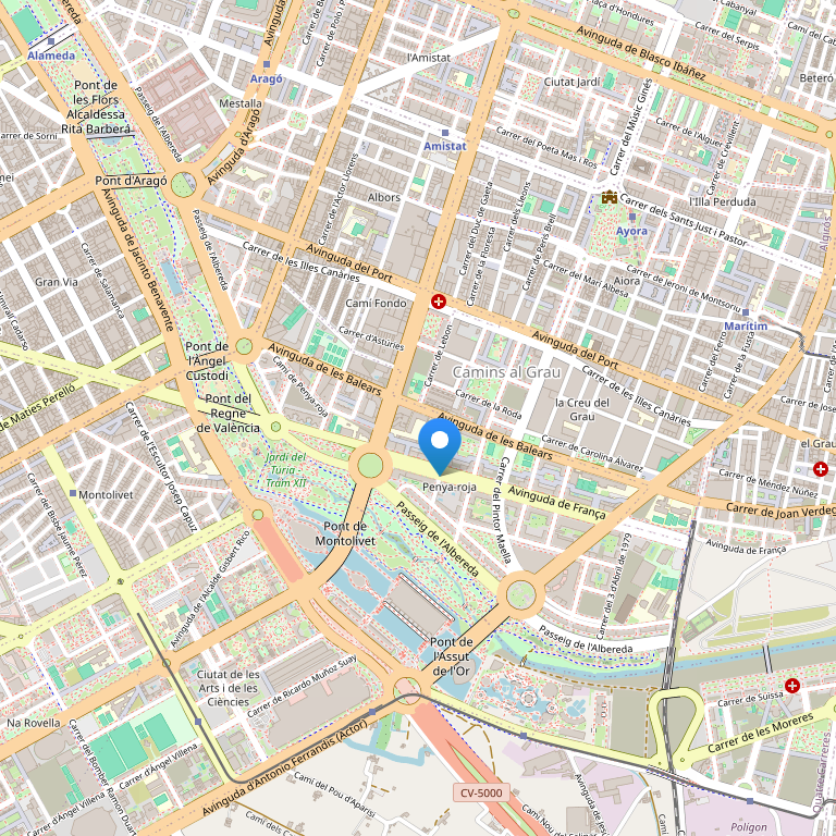 Отель расположен между историческим центром Валенсии и пляжами, в 15 минутах ходьбы от Города искусств и наук, в 400 метрах от пристани для яхт и недалеко от гоночного трека Formula 1. Пляж находится в 1,5 км от отеля, станция метро Ayora - в 600 метрах, аэропорт в 11 км, а прямо рядом с отелем есть автобусная остановка.