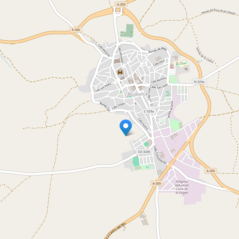 Отель располагается в здании XIX века, построенном из красного кирпича на главной площади Plaza Mayor города Бухалансе, прямо напротив здания мэрии. До Кордовы – 40 км.