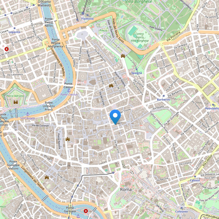 Отель расположен в самом сердце Рима, в двух шагах от знаменитой Испанской лестницы. Этот отель XVII в. находится в одном из самых элитных районов города между Via Condotti и Via Borgognona, в окружении бутиков всех известных брендов. Уютные кафе и рестораны, исторические улицы и знаменитые памятники архитектуры находятся в двух минутах ходьбы от отеля. Международный аэропорт Леонардо да Винчи находится в 30 км, железнодорожный вокзал Термини – в 2 км, станция метро Piazza di Spagna – в 200 м от отеля.