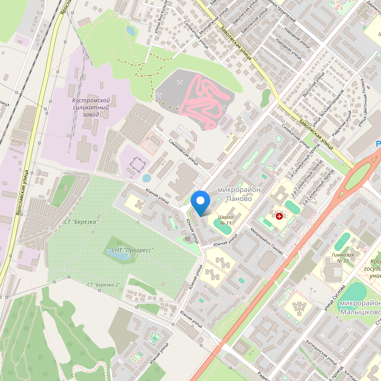 Гостиница расположена в тихом, экологически чистом и удаленном от городских улиц месте в южной части города в непосредственной близости от въезда в город со стороны Ярославского и Ивановского шоссе.