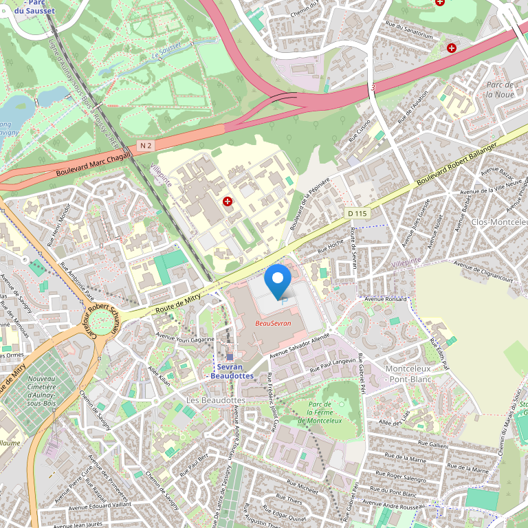 Отель расположен в северо-восточном пригороде Парижа, в 28 км от центра Парижа, в 10 минутах от выставочного центра Parc des Expositions at Villepinte, недалеко от многих парижских достопримечательностей, в 9 км от международного аэропорта Шарля де Голля и в 44 км от Парижского Диснейленда. Музей Musee de l'Air – в 8,5 км, Stade de France – в 16 км, Parc Asterix – в 27 км, Эйфелева башня – в 28 км, Mer de Sable – в 35 км. Аэропорт Le Bourget - в 11 км, международный аэропорт Орли – в 40 км, железнодорожная станция Sevran Beaudotte – в 200 м.