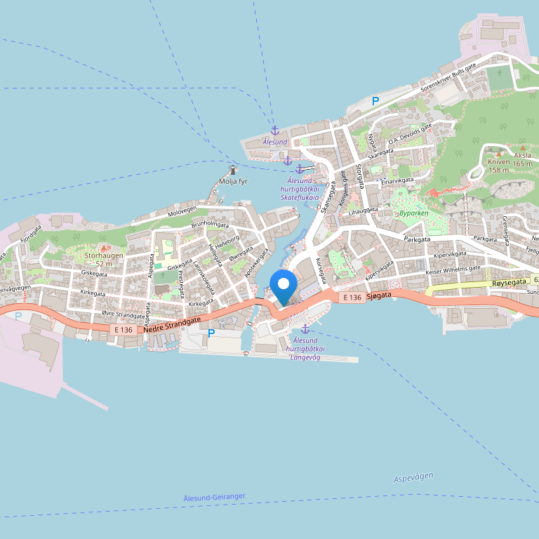 Отель расположен на берегу моря, рядом (в 3,7 км) с морским парком Atlantic Sea-Park – одним из самых больших в Европе, в нескольких минутах от музея Sunnmøre Museum (в 1 км), Aalesunds Museum (в 2,2 км) и церкви Ålesund (в 1 км). Аэропорт Ålesund – в 15 минутах езды от отеля. Рядом с отелем также находится несколько магазинов, ресторанов и больница. Автобусная остановка – в 500 м, железнодорожная станция – в 100 км,