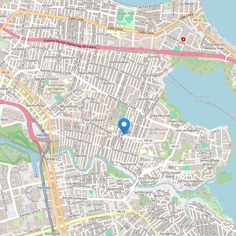 Бутик-отель расположен всего в 200 метрах от пляжа Condado Beach, недалеко от международного аэропорта Luis Munoz Marin International Airport (в 6,4 км) и конгресс-центра Puerto Rico Convention Center (5,6 км). Улица Ashford Avenue и торговая улица Magdalena Street, на которой находятся модные бутики (Cartier, Louis Vuitton, Christian Dior, Gucci и другие), – в нескольких минутах ходьбы от отеля. Историческая часть города Сан-Хуан с мощеными улочками, музеями, кафе, – в 6 милях от отеля (8 минут езды).