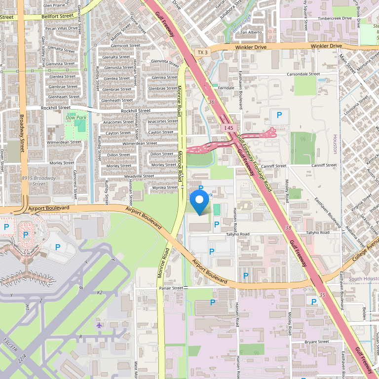 Отель расположен всего в нескольких минутах езды (2 км) от аэропорта Houston Hobby Airport, рядом с автострадой 45, между центром Хьюстона и Galveston Island, недалеко от популярных ресторанов и корпоративных офисов.