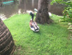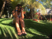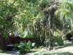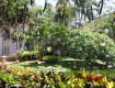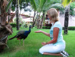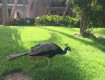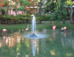 - большая зеленая территория с фламинго и павлинами