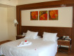 Заселение - приехали около 2 часов ночи по местному времени. В холле стояли напитки холодные и горячие. Заселили быстро в номер Стандарт - с видом на зеленую ограду. На сл. день, с доплатой в 60 баксов поменяли номер на Фэмели 2 комнатный, на 2 этаже с видом на аквапарк, в 1 корпусе.
