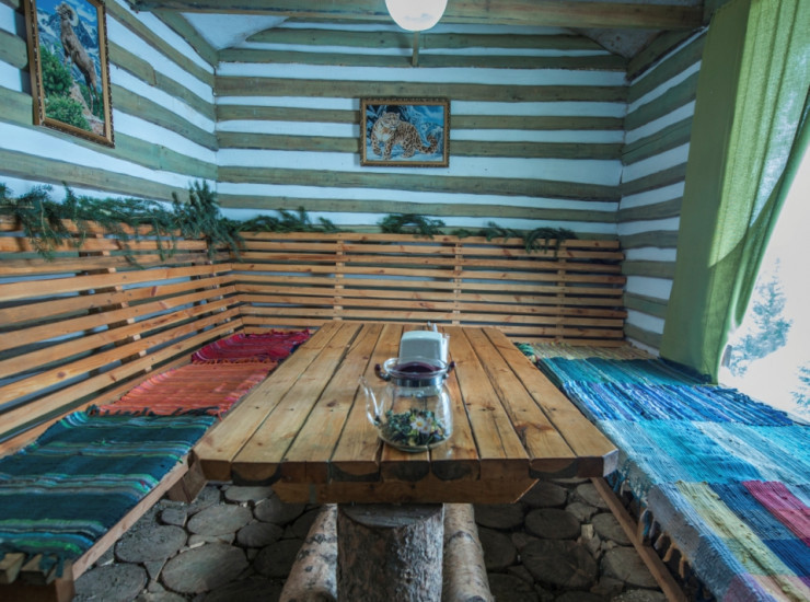 Здесь приятно посидеть с друзьями после активной прогулки по горам или катания по заснеженным трассам, выпить горячего глинтвейна или чего-нибудь покрепче, насладиться отменным вкусом шашлыка, который благодаря постоянной растопке мангала, вам подадут максимум через 20-25 минут, покурить ароматный кальян и