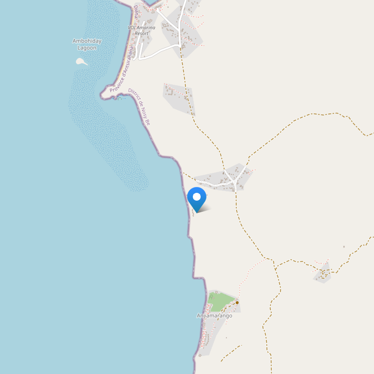 Отель Amarina расположен в Нуси-Бе, на северо-западе острова, с видом на лагуну Ambohiday, на площади более 6 гектаров, в 45 км от аэропорта, на живописном пляже, в нескольких минутах от живописной рыбацкой деревни.