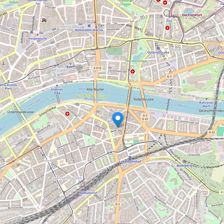 Отель расположен в самом центре Франкфурта, в 3 минутах ходьбы от станции скоростной железной дороги Ostendstraße и исторической части Франкфурта. Недалеко от отеля находятся такие популярные достопримечательности, как торговая улица Цайль, Императорский собор Святого Варфоломея и старинная ратуша Рёмер.