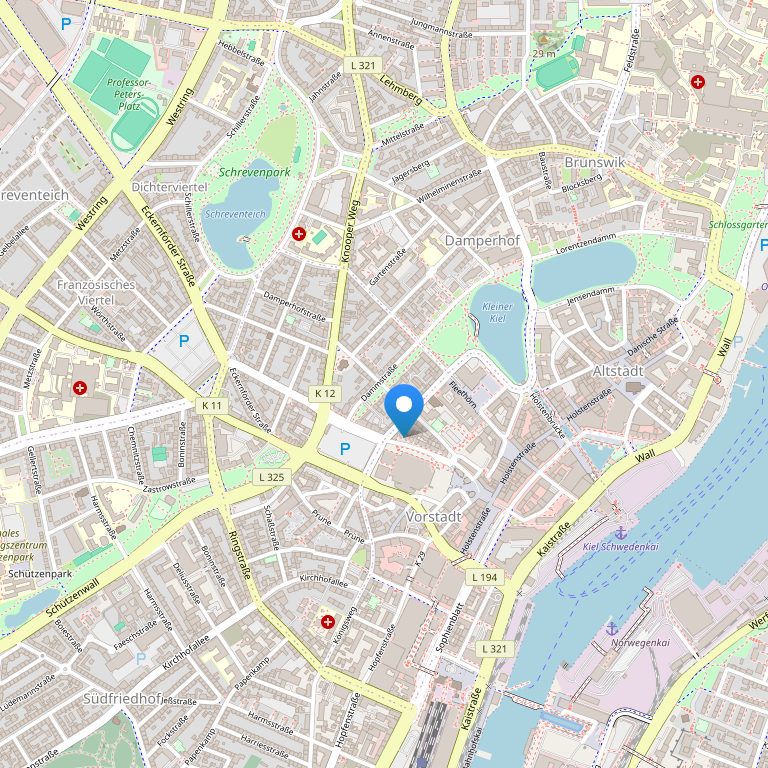 Отель расположен на главной улице города Киль, в пяти минутах ходьбы от центральной станции.