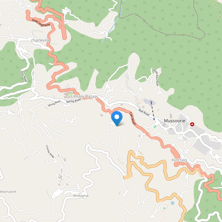 Отель располагается на склоне холма, с которого открывается великолепный вид на долину Дун, в городе Mussoorie, среди холмов Гарвал, на высоте 2500 метров над уровнем моря и в 34 км от Дехрадуна. Расстояние до аэропорта Джолли-Грант составляет 60 км.