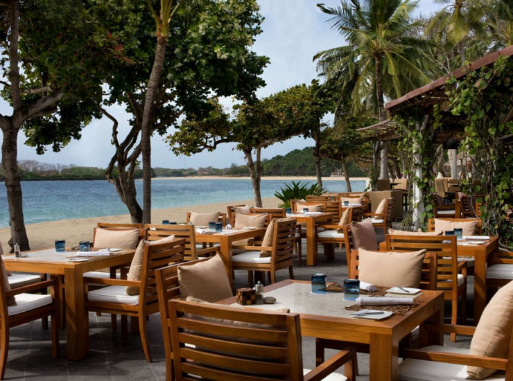 Just footsteps from the white sand beach of Nusa Dua, Ikan Restaurant looks over the Indian Ocean and promises a relaxed dining ambience. This beach restaurant in Bali serves authentic Balinese specialties, island-fresh seafood, and Western cuisine in an oceanfront setting.