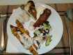 Здравствуйте. На завтрак были колбаса, но такую я не ем, она очень специфическая. Ну или сосиски, такого же качества. А мясо на обед и ужин.