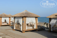 6) отличные шезлонги на пляже с грамотными навесами для тени. Шикарный пирс с белоснежными лежаками и возможностью отдельного спуска в воду.