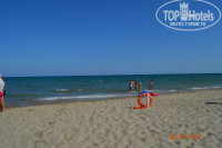 О море - море прекрасно, чистое и прозрачное. Есть рыбки и маленькие крабики))) Пляж чистый, мелкий светлый песок. Лежаки и зонты бесплатно, что приятно порадовало ( обычно в Европе платно). Причем лежак закрепляется за вами на все время отдыха, что тоже радует. Спасатель на пляже ( тот что постарше, не помню имя) просто молодец. Охраняет всех отдыхающих от посещения отельного пляжа местными. Рядом на бесплатном городском пляже просто ужас - местные лежат друг у друга на головах и как положено с колясками, детьми и собаками. Поэтому мы чувствовали себя "избранными")))) От отеля пляж в пяти минутах ходьбы. Вообщем море и пляж это очень большой плюс!