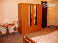 При ближайшем рассмотрении номера восторг слегка пошатнулся. Несмотря на то, что номер большой, с огромными потолками и милыми окошками,присутствует ужасная старая сантехника, по углам - годами образовывавшаяся грязь... Из минусов моих личных - очень плохое освещение. На такой номер с таким потолком: маленькая трех-рожковая люстра с лампочками не более 40 ватт + торшер, от которого свет годится только для интима.