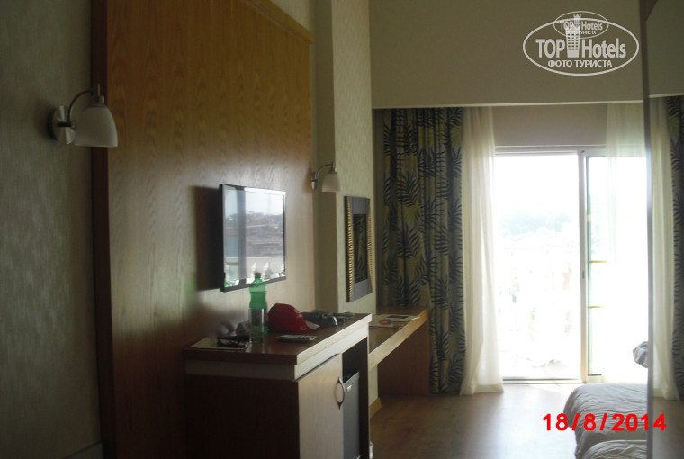 Добрый день! Хочу поделиться своими впечатлениями о данном отеле. Я отдыхала с дочкой в этом отеле с 18 августа по 26 августа 2014 г. Отель просто супер. Номера новые, просторные. Единственное что меня сначала удивило, в номере в душе отсутствовала дверь, дверь была только в туалет стеклянная (матовое стекло), а потом я привыкла к этому. Номер убирали каждый день. Персонал отеля дружелюбный. Питание отличное, разнообразное! Территория отеля большая, 4 бассейна, горки водные! Можно выходить за территорию погулять, там есть магазинчики с одеждой, обувью и сувенирами. До моря идти минут 5-7. Да, там действительно есть, по дороге к морю, сточная канава. Но, то что из нее слишком неприятный запах (как писали в отзывах), это полная ерунда, если только чуть-чуть. Анимация оболденная, приезжали артисты, акробаты. Море теплое, как парное молоко. Вход в море отличный, особенно для детей, пляж песчанный. В лобби баре бесплатный wi-fi. Вообщем отдых удался. Особая благодарность АнексТуру и нашему гиду Альберту! Отель рекомендую.