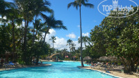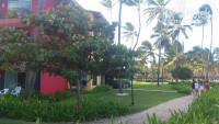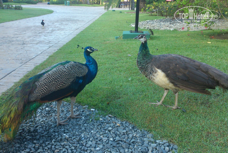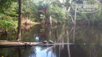 Территория отеля достаточно большая, совмещенная с Tropical princess 4*. Лобби, дискотека, магазины и театр находятся на приличном расстоянии от жилых корпусов. С одной стороны это прекрасно (тихо, можно погулять), с другой стороны иногда это не удобно, особенно когда опаздываешь на экскурсию или надо срочно выйти в интернет (бесплатный вайфай только в лобби). По территории покругу курсирует паровозик. Вечером, когда много желающих уехать в лобби, понимаешь плюсы пребывания именно в Caribe, народу набивается полный паровоз и гостям Tropical на следующей остановке иногда не хватает места. Вечером водитель громко включают местную музыку и мчит тебя с ветерком до места назначения. Если не хочется ждать паровозик, можно прогуляться до лобби пешком. С права и слева тропинки болотца, растут пальмы, мангры, деревья и цветы. Много птиц, есь прудик с черепашками. Черепашки постоянно голодные, выпрашивают хлеб. Так как болото занимает не малую территорию, в отеле очень много комаров. А комары там просто звери! Но мы были к этому готовы и запаслись спреем, однако я всё равно вся в укусах ходила. Как уже писала выше, интернет бесплатный только в лобби, вечером там собирается очень много желающих разместить фото в Инстаграме или чиркануть сообщение в Фейсбук, поэтому скорость просто катастрофа!
