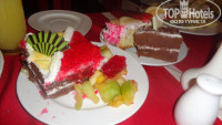И в обед начинались сладости. Около 8-10 видов не меньше всегда разных тортов-пирогов-бисквитов и т.д. Смотрите на фото и на видео на моем YouTube, один раз давали за неделю