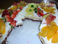бананы, ежедневно-апельсины, гуава, гранат, реже - грейпфрут. Ежедневно вкуснейшие ОГРОМНЫЕ финики! На тортиках-ананасы, клубника,дыни(которые тоже часто давали но не такие вкусные как я ел в Тунисе, после дынь в Тунисе все