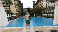 В Турции третий раз. В этом отеле отдыхали с беременной супругой с 6 по 16 мая 2014 года. Прилетели с Алматы. В аэропорту нас встретил "Consul travel" и с комфортом доставил в отель на комфортабельном микроавтобусе мерседес. Заселения долго ждать не пришлось, где то через 30-50 мин после прибытия нас заселили в номер, причем по привычке дал им 20$ для лучшего заселения-на удивление деньги вернули))). Т.к. при покупке путевки мы сказали что мы молодожены, в номере нас ждал сюрприз из корзины фруктов и бутылки вина! Боялись что в мае будет холодно, но в общем то было нормально тепло, не сильно жарко, а главное не было духоты, спать в номере можно было с открытым окном не включая кондиционер. Перед отлетом пришла уже настоящая жара, два раза за эти дни был дождь и сильные волны, в эти дни не купались. Первые дни море было холодновато, но к 10 мая все прогрелось, к 12 часам дня пляж был полный. Вода в море отличная, купалась даже беременная супруга. Плавая с маской возле пирса можно было с рук кормить рыб)). Море чистое, пляж галька, но не острая, можно ходить босиком. В бассейне купался всего несколько раз, т.к. предпочитаю море. Кому море было холодным купались в бассейне, там вода была теплая как чай!