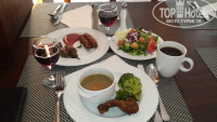 1. Ела в ресторане на 1ой линии. Чисто, вкусно, очень разнообразно, красивый вид на водопадик, мух почти нет, мебель новая, красивая, уютное расположение столиков. На вторую линию ходила прогуляться, желания там остаться не возникло, еда такая же, а обстановка, как в столовой!