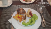 4. Мясных и рыбных блюд очень большое разнообразие, каждый день ела что-то новое. Я мясоед, сладкое почти не ем, но слоечки на завтрак с кофе были восхитительны. Перечислю немного блюд: печень, рыба, говядина, свинина, курица, перепела, индейка, язык, краб, кальмары. Каждый день разные бульоны. Много свежих и гриль овощей, каша только одна, я ее не ела, много йогуртов, хлопьев, шариков, фрукты и йогурты спокойно можно выносить с собой, впрочем , как и другую еду (для этого привезла с собой 2 контейнера).