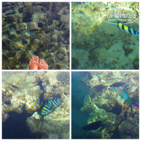 2. В море вода примерно такая же, прозрачная, рыбок достаточно, но утром. Понтон удобный, широкий, 2 входа в воду. Лодки паркуются отдельно за буйками, запахи почти не чувствовала от них.