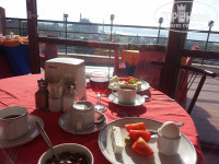 Завтраки - голодными не останетесь (помидоры, огурцы, 2-3 вида сыра, булки, джем, яйца, хлопья, чай, кофе, йогурт), но нет ни сосисок, ни колбасы, вообще ничего мясного. Вид с террасы (есть застекленная и открытая части) потрясающий.