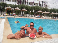 Всем привет. Решил оставить свой отзыв об отдыхе в Турции. Отдыхали мы с 19 по 29 мая. Данный отель я сам лично выбирал, и не пожалел!!! Территория не большая, уютная, чистая. 3 корпуса 3-х этажные ( и это плюс). Все у всех на виду. Мы были как одна большая семья.Номера.....Ну я приехал не в номере сидеть, а отрываться и веселиться. Кровать нормальная, белье чистое, телевизор, кондиционер- все работало. Горячая вода есть. Мне в номере главное было поспать, и душ принять. Не обращайте внимание на мелочи!!! Отель категории 3+*. Вы же приезжаете не в номере сидеть!!!Пляж: через дорогу, по подземному переходу. Вот пишут грязноватый пляж.Народ, так не мусорьте!!!! Будьте добры свой хлам за собой убирать!!! Для меня пляж нормальный! Через день на пляже вечерние дискотеки, мы даже попали на пенную вечеринку. Не в каждом 5* отеле есть такое!!! На пляже можно перекусить( картошка фри, спагетти, котлеты, овощи, фрукты, лепешки, чай кофе).Спиртное можно брать с бара в отеле на пляж. Но скажите бармену, что на пляж. Он вам тогда в пластиковый стаканчик нальет. Питание: голодными точно не останетесь!!!! Разные салаты, овощи, фрукты, много зелени, грибы, курица, говядина, картошка, спагетти, рожки, супы, рыба в кляре, броколи...... и т.д. и т.п. Вы же не обжираться приезжаете))). Возле бара с 16.00 до 16.30 дают бесплатно мороженное. Спиртное: разное есть. Раки со спрайтом мне понравилось)))). Теперь анимация: Вот из за аниматоров я и выбрал данный отель!!! Все на высшем уровне. Аниматор Альбина-Бомбина: просто замечательная девушка!!! На аквааэробике я с бабульками занимался в бассейне))), и зумбу танцевал, и в дартс играл))). Отзывчивая, улыбчивая, приветливая. Ко всем подойдет, со всеми пообщается, на все вопросы ответит. МОЛОДЕЦ!!! Аниматор Юрочка))))): тоже отзывчивый, улыбчивый приветливый парень. И волейбол, и водное поло, и дартс. Юрочка- я помню пачку сигарет украинскую)))). МОЛОДЕЦ!!! Аниматор Фунда: детский аниматор. Целый день с детьми возиться. Молодец. Фунда- я помню как ты меня кормила лимоном)))). Аниматор Джан: я помню как ты меня прозвал русский фифти сент)))). Езжайте в отель, будьте веселыми, участвуйте в играх. Альбиночка вас заведет с утра зажигательной зумбой, в бассейне позанимаетесь аквааэробикой, и вам хорошее настроение на целый день обеспеченно!!!! Потом мужчины вместе Юрочкой позанимаются волейболом, водном поло, и настроение вам обеспеченно на остальные дни))). Вот пишут много пьяной молодежи, ВРАНЬЕ!!!!! Я вообще целый день резвый был и отрывался по полной. Главное хорошее настроение, и позитив. Если вам важны номера, то езжайте в 5*. К нам в отель с 5* переехали 7 человек!!!! Говорят: да, там номера крутые, да отель больше, красивее, да есть холодильник с бесплатным спиртным в номере.НО!!! Зачем нам спиртное в номере? СКУКОТА В ОТЕЛЕ!!! А мы хотим веселья, и развлечения! И они когда узнали про наш отель, то просто договорились с туроператором и переехали!!!! И не пожалели!!! Бабушка одна постоянно участвовала, где была аниматор Альбина. Вообщем не обращайте внимание на минусы! Найдете два минуса, улыбнитесь и сделайте из этого один БОЛЬШОЙ ПЛЮС!!! АЛЬБИНА- БОМБИНА, ЮРОЧКА, ВАМ ОТДЕЛЬНОЕ СПАСИБО ЗА ПРЕКРАСНЫЙ ОТДЫХ!!!! Надеюсь увидимся в мае 2016!!! СИ ТАЙМ СУПЕР!!!!! И ЕЩЕ: если вам нужен спокойный отдых, если любите релакс- то вам не сюда. Езжайте в 5*. Но у вас не появятся новые знакомства.... В данном отеле все веселятс