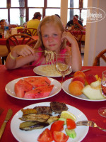 Не знаю чем так захватывает отель, но при выборе не смогла выбрать ничего другого и снова полетели в Аспендос. Пляж шикарный, еда в 2013 году по сравнению с 2011 стала лучше, больше сладостей, фруктов, мяса. По алко снова ничего не скажу, мужчины пили виски немного, вроде все нормально. Официанты летают как мухи, улыбаются, как всегда молодцы! Детская анимация супер! Шум с дороги и мечеть - вот основные минусы отеля. Заселили сначала в семейный номер в главном корпусе на 1 этаже, влажность жуткая, на следующий день еле-еле за 25$ поменяли на семейный номер в белом корпусе на 3 этаже. Носильщик выпрашивал чаевые. Фотограф Саша с попугаем отличный продажник, уговорил на фотосессию, сторговался, вобщем мы все довольны )