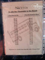На пляже Сиерры есть бар, начинает работать не в 10 часов, как обычно во многих отелях, а даже раньше: соки из пакетов, кофе, пиво, нет крепких напитков – только в барах на территории отеля. С 11-30 до 17 часы перекусы в виде многочисленных бургеров и т.п , с 15 до 17 часов мороженое в трубочках. Бургеры на перекусе на пляже по прежнему вкусные.