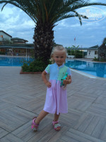 В Турции бываю достаточно часто, раз в год точно, поэтому есть с чем сравнить этот отель) все довольно таки прилично, отель, зона бассейнов, садики- все чистое, заселили нас быстро, никаких поборов не было! Я сразу попросила номер подальше от диско и шумных мест отеля. Нам дали номер 2510 это на 5 Ом этаже. Все устроило. Номера обычные: кровати, тумбочки, шкаф. Не очень просторные, но места достаточно. Уборка номера выпадала на наш дневной сон, я сразу сказала на ресепшине, чтоб наш номер убирали до 14 часов.так и было, правда один раз не убрали и мне пришлось напомнить о себе.