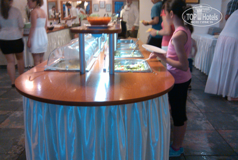Да и еще такая особенность: если прийти на ужин или завтрак за 10 минут до конца, можно и не покушать: ровно в момент окончания завтрака, обеда или ужина над остатками еды выключают свет и еду уносят. Я так понимаю, если человек зашел на завтрак даже за 2 минуты до окончания, он должен спокойно набрать себе еды и покушать. Просто мы когда шли на завтрак в 9 часов 3 раза вареных яиц уже не было. А у нас ребенок ел на завтраке только мюсли и вареной яйцо. То есть, когда яиц не оставалось, ребенок недоедал. Я считаю, если у вас шведский стол, обеспечьте наличие продуктов на нем до окончания завтрака, либо ужина. Так бывало и с другими продуктами.