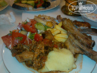 В целом на ужине все было вкусно, особенно в первые дней 5 нашего пребывания. А потом что-то испортилось: салаты делать перестали, только одна капуста ничем не заправленная и помидоры с невкусными огурцами, свинина была твердая и не прожаренная как следует, ребра слишком сальные, куриный суп с вермишелью один раз был кислый, ассортимент блюд уменьшился. Не знаю, с чем это связано. Мы так предположили, что стало больше русских в отеле и на кухне решили, что русские и так все съедят. В первые 5 дней еда не кончалась, ее постоянно подносили. Потом появились очереди, еды не хватало. Ребенок попросил спагетти, их там лежало 3 макаронины, как раз вышел шеф повар, я у него спросила, будут ли еще макароны, он нервно ответил, что они не успевают и сейчас принесут. Макароны принесли через 10 минут. Все это время моя ляля больше ничего не ела, ныла, просила макароны. Так это, простите, не наши проблемы, что вы не успеваете.