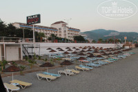Пляж: пляж рядом, через дорогу, по переходу. Пляжа два - по обе стороны от пирса, можно обитать на любом, нам больше нравился тот, что слева, если смотреть на море. На пляже песка нет. Галька - местами крупная, на входе в море - мелкая. В целом нормально, специальной обуви не требует, ходить по мелкой гальке достаточно комфортно. Вход в море, как уже писали, не очень удобный, так как большие каменные плиты. На нашем пляже был всего один проход без камней, там обычно все и плавают. Мы обычно ходили плавать с пирса. Обратите внимание, что море в этом районе Турции неспокойное. За 14 дней отдыха ни разу не было спокойного моря, волны разной степени интенсивности были всегда. В это же время коллега отдыхала в Кемере, там почти постоянно был штиль.