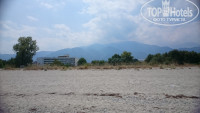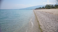 2. Пляж. Очень близко, песчаный, очень длинный. При отеле есть лежаки и зонтики, если у тебя есть браслет, то пользование бесплатно, иначе - за напиток в баре на пляже. Море, конечно, великолепное, теплое и ласковое. Заход в воду постепенный, галька и песок, если переплыть несколько метров глубины, то можно ступить на песчаную косу. По границе территории отеля в море впадает горный ручей с очень холодной водой. В зависимости от ветра и волнения, в море попадаются участки холодной воды. Зонтиков на пляже много, отдыхающих тоже. К выходным подтягиваются греки, занимают большинство лежаков своими большими греческими семьями. Вообще, на организованном пляже огромная скученность, море превращается просто в "компот", и по поверхности плавает пленка от кремов. Некуда ступить.