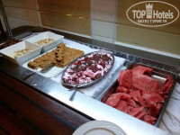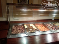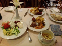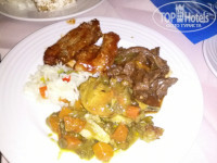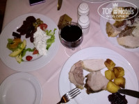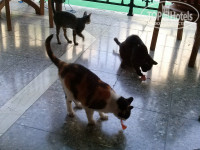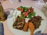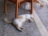 3. Питание. У меня был полупансион. Недавно писали в отзывах, что напитки платные; вообще-то, это нормально для HB. Вот в прошлом году в Тцокос Проторас до середины июля б/а напитки были бесплатные на ужин – это было в диковинку! Питание – шведский стол. Не супер разнообразно, но все съедобно – думаю, что это и есть уровень трех звезд. Завтрак: яйца вареные, глазунья, болтунья (scrabble), омлета НЕ БЫЛО. Бекон жареный, сосиски вареные, жареные помидоры, овсянка, жар. картошка, фасоль, хлопья, сыры 4 сортов, «колбаса» 3 видов, помидоры, огурцы, йогурт, джемы, мед, фруктовый салат или фрукты из консервов, яблоки, апельсины, хлеб, круассаны, кофе, чай, сок непонятного происхождения, но не «зуко». А еще на завтрак есть приятное дополнение – котики, приходящие кушать вместе с вами. Целая банда котиков, которые хотят колбаски, киньте им кусочек и за меня, если поедите в Kapetanios Odyssia. Ужин: салаты зависят от тематики ужина (расписание есть в номере и висит в лифте), но всегда есть зелень и огурцы-помидоры. Обычно 5 видов закусок. К ним оливки, маринованные овощи (типа свеклы, морквы), соусы. Мясо разных видов, рыба, курица. Приготовление тоже зависит от тематики вечера. Гарниры – картошка, спагетти, рис ( в разных вариантах). Всегда есть супчик. Десертов 4-5 видов, арбузы, яблоки, персики. Арбузы и яблоки норм, а персики несъедобные попадались! Мороженное трех видов. Голодным остаться невозможно. 0,5 воды 1,4 евро, бутылка вина типа Отелло – 12 евро, бокал вина 3,5 евро, 1 литр домашнего вина 7-8 евро. Если не готовы переплачивать – пейте арбуз. Почти каждый день в ресторане живая музыка.