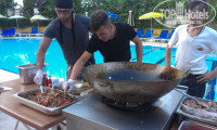 Номер был над центральным входом в главный корпус, с прекрасным видом на горы. В номере все работало. Уборка была каждый день, нареканий никаких не вызывало. Всегда можно найти что покушать, независимо от вкусовых предпочтений. Было много зелени, салатов, десертов, гарниров, всегда есть курица и рыба, чуть реже баранина. Мы всегда были сыты. Каждый вечер на улице готовят что-нибудь на гриле или в хазане. Попали на вечер турецкой кухни, еда была отменная!! После этого было турецкое представление, получили очень много хороших впечатлений.