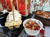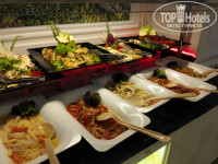 Порадовал сладкий стол. Я к сладкому равнодушна, но тут не смогла устоять - очень вкусно) Порадовало разнообразие зелени. Я так много зелени даже дома не ем) Мясо присутствовало постоянно в том или ином виде. За питание ставим 5- только из-за отравления мужа. И то мы не поняли, на что такая реакция, т.к. со мной всё было хорошо. Столы всегда есть, даже в разгар кормёжки.