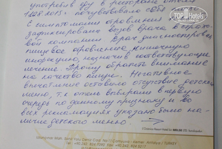 Во-вторых, с ваших слов, никаких случаев отравления в вашем отеле не было. Откуда же возникло моё пищевое отравление, при условии, что я питалась только в отеле, в бассейне не плавала и в море воду не глотала? И случаи отравления в отеле были, находящиеся у вас работники туроператоров сказали, что такое происходит с завидной регулярностью и сами же посоветовали мне написать претензию, чтобы вы следили тщательнее за кухней.